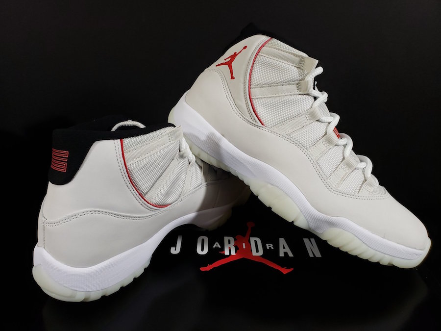 采用了近年颇为流行的铂金色作为基调,清爽、高级,又有不俗的时尚气质。细节以鲜红色点缀,果冻外底收尾,整双鞋既有 Air Jordan 11 的经典运动气质,又注入了满满的时尚韵味。