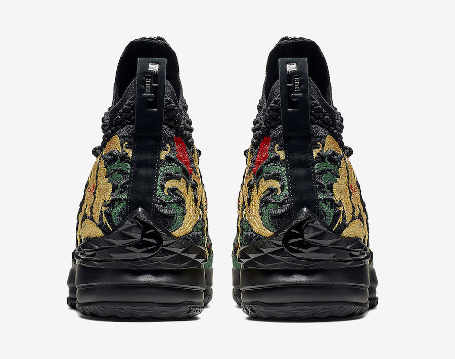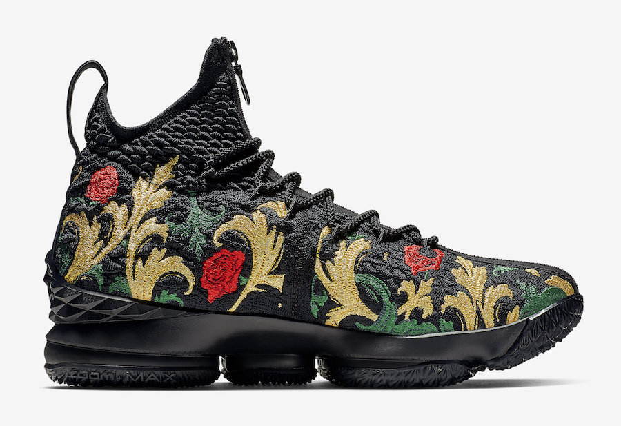 KITH 同 Nike LeBron 15 的联名以华丽的花卉刺绣呈现,其间既有艳丽的花朵,也有霸气十足的雄狮图案,在视觉冲击力方面的得分近乎满分!