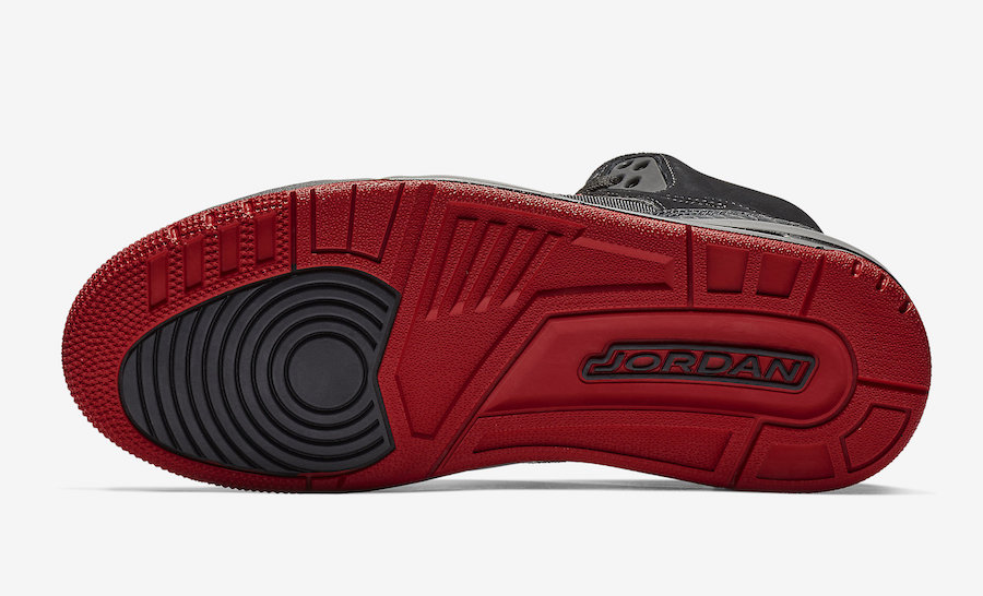 鞋身以黑色贯穿,但牛巴革材质同帆布面料的结合,营造了不同质感的组合效果,加上源自 Air Jordan 3 的爆裂纹、Air Jordan 5 的网格和 Air Jordan 4 的鞋带扣装饰,这双鞋的辨识度依然很高,经典气质十足!