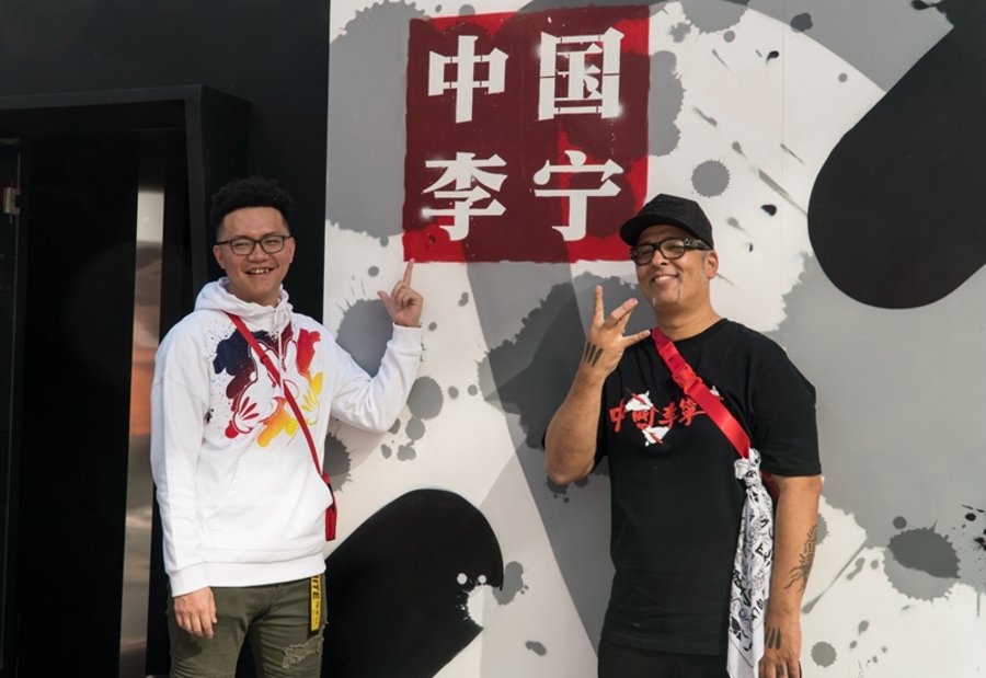 首先 OG SLICK 在互动体验空间墙壁上喷涂了自己的签名,并和孙明旭一同畅谈这次合作。