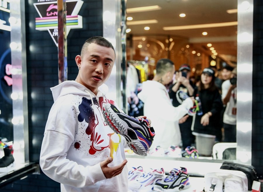 国庆期间,李宁在北京三里屯设立互动体验空间和快闪店,10 月 1 日,OG SLICK 亲临现场参加联名单品首发签售活动。