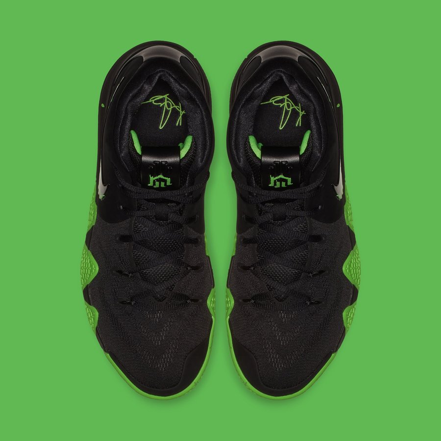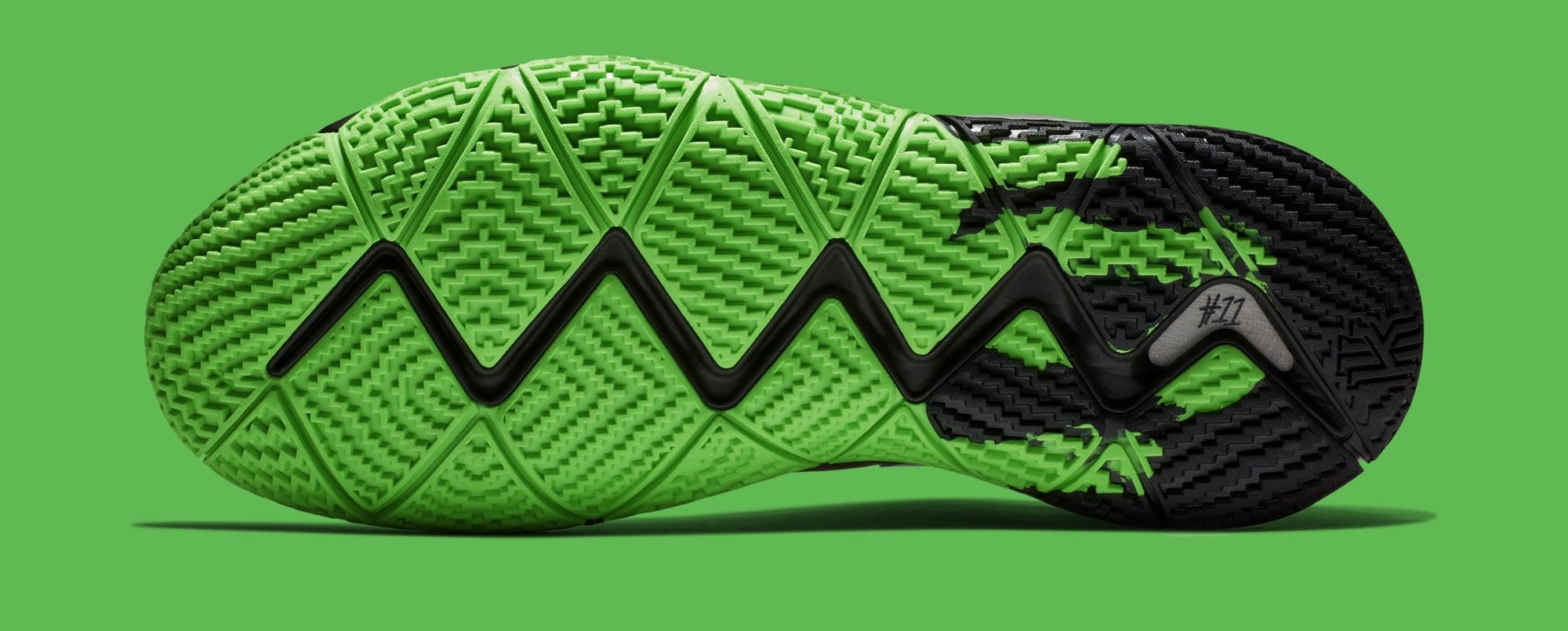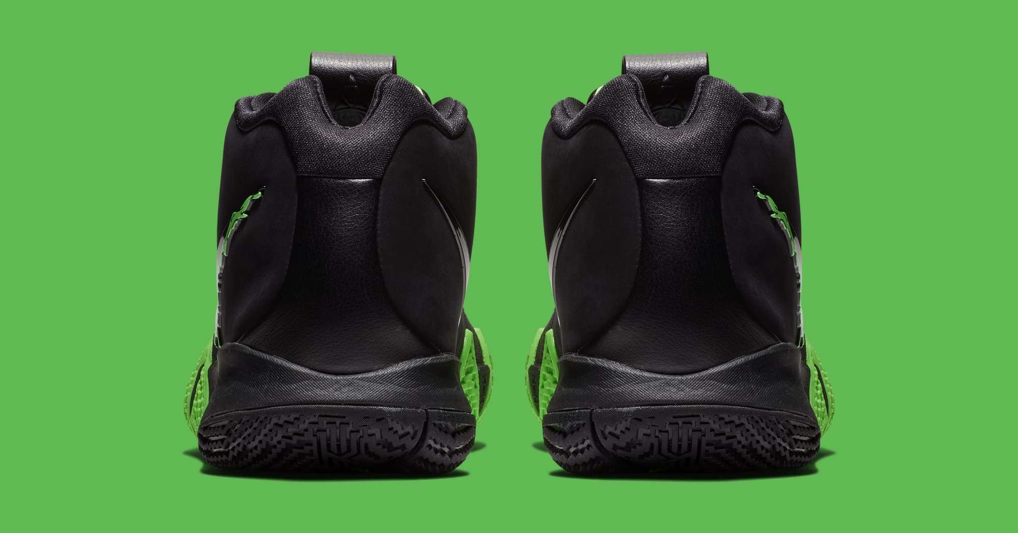万圣节的来临也为球鞋的新配色提供了绝佳的灵感来源,眼前的 Nike Kyrie 4 “Halloween” 就以辨识度极高的恐怖细节呈现,黑绿的配色装扮也颇具节日氛围。