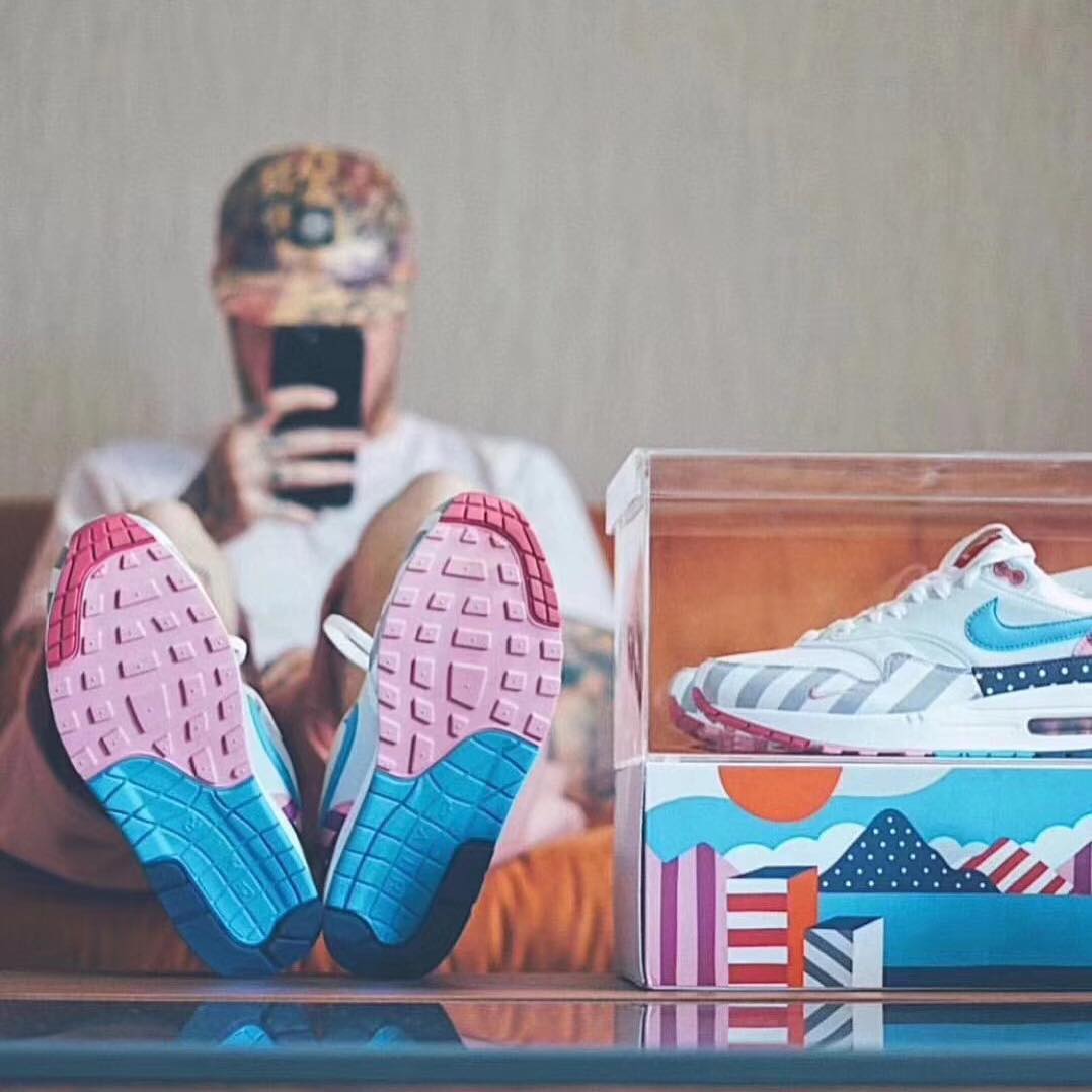 除了 Air Max 1/97 外,今年大气垫家族的新品中,最让你印象深刻的还有谁?相信超多小伙伴都会选择 Parra x Nike Air Max 1 这款抽象画风的联名鞋。
