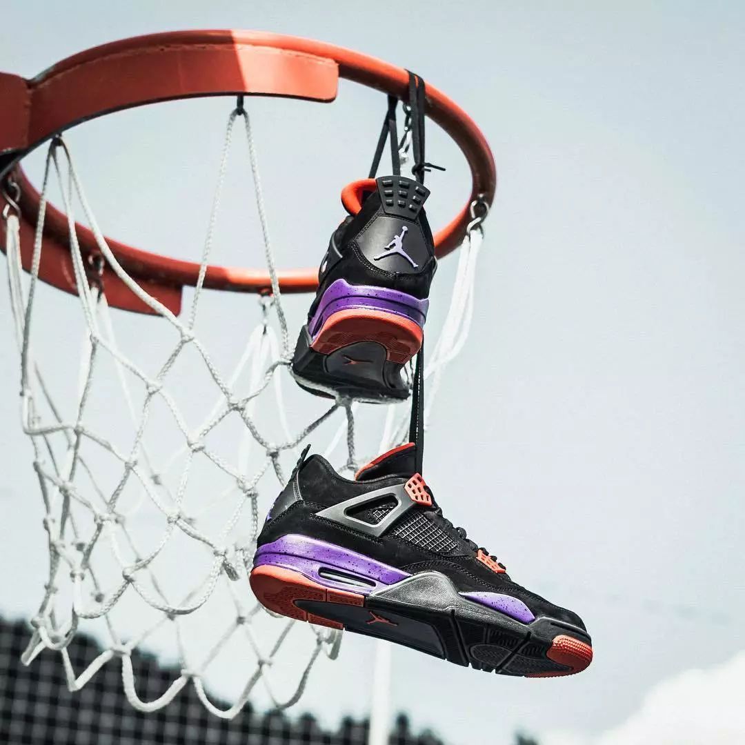 曾为 Drake 专属打造,猛龙配色 Air Jordan 4 一经曝光就备受球鞋玩家关注!黑色磨砂皮革鞋身辅以红、紫点缀,上脚极为闷骚。