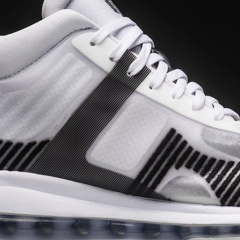 鞋款使用半透明蝉翼鞋面,同时包含丰富条纹细节。吸取 Nike LeBron 8 的全掌 Air Max 气垫作为中底,柔软的皮革内衬,相比 LeBron 实战系列的十足运动感,这双联名鞋款不仅整体简洁干净,还兼具运动与时尚气息。