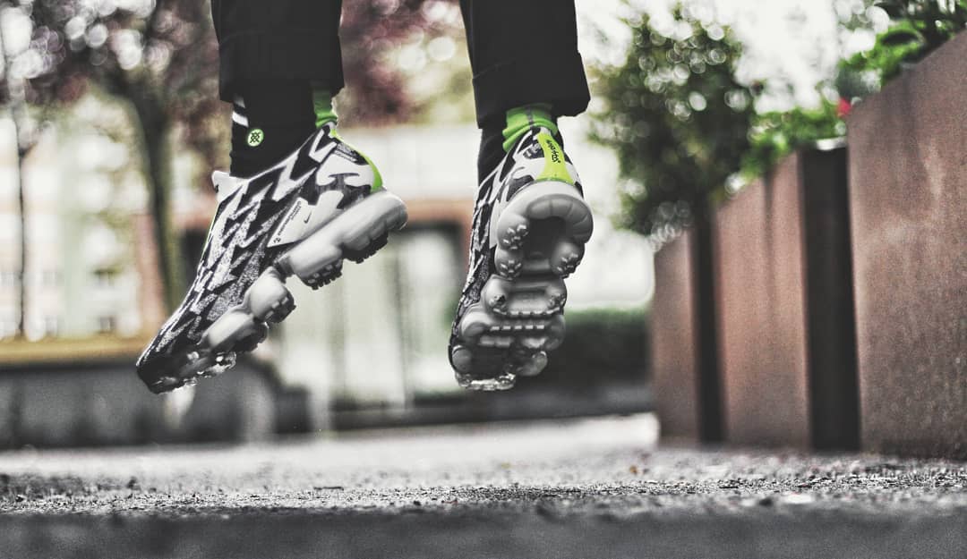 年初的 ACRONYM x Nike Air VaporMax Moc2 同样具有让人过目不忘的超强辨识度,黑白配色鞋舌部位辅以荧光黄点缀,上脚效果非常炸,吸睛指数爆棚!
