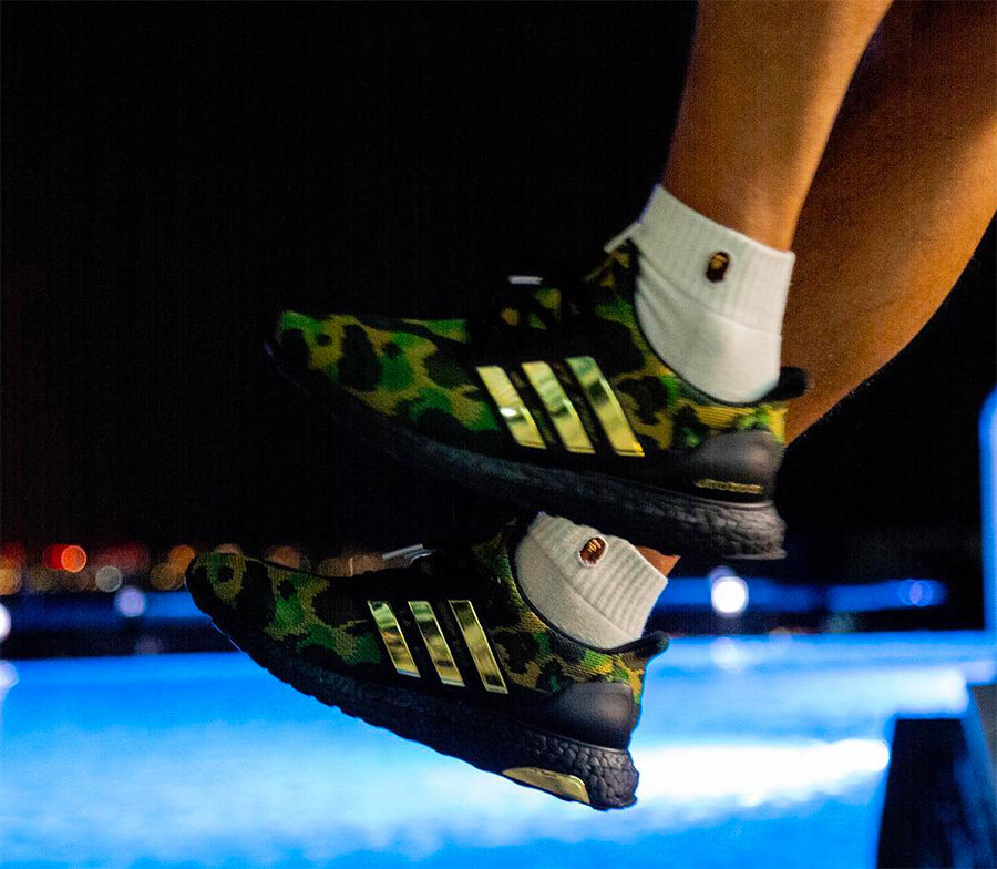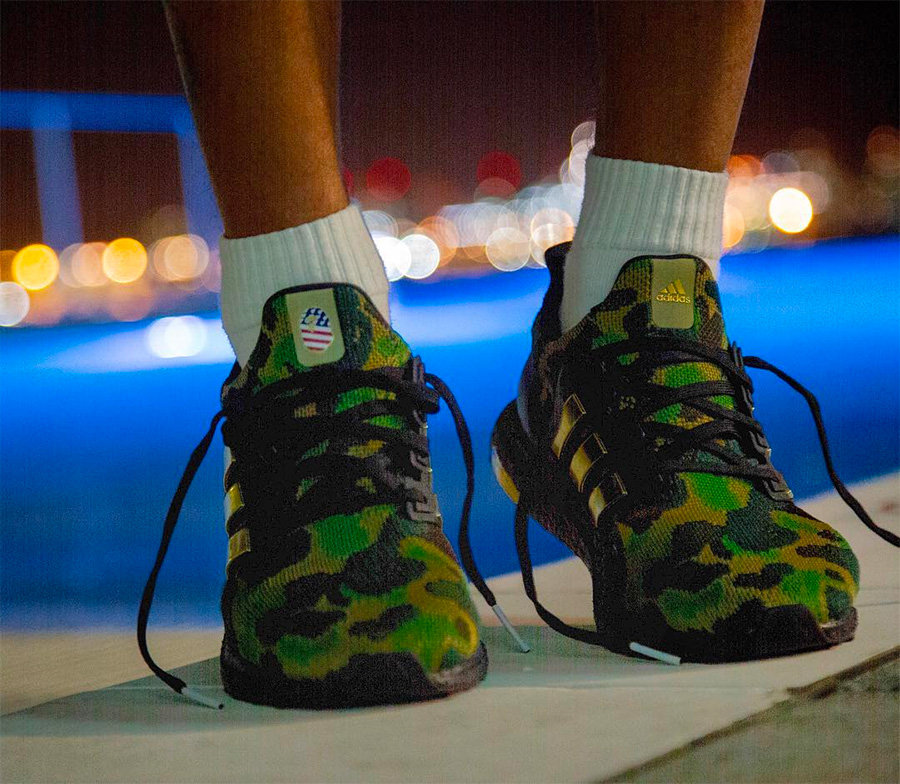 其中这双 BAPE® x adidas Ultra Boost 让双方再次融合了两大经典元素,一边是畅销全球的缓震跑鞋 Ultra Boost,一边则是 BAPE® 最具辨识度的绿色迷彩。
