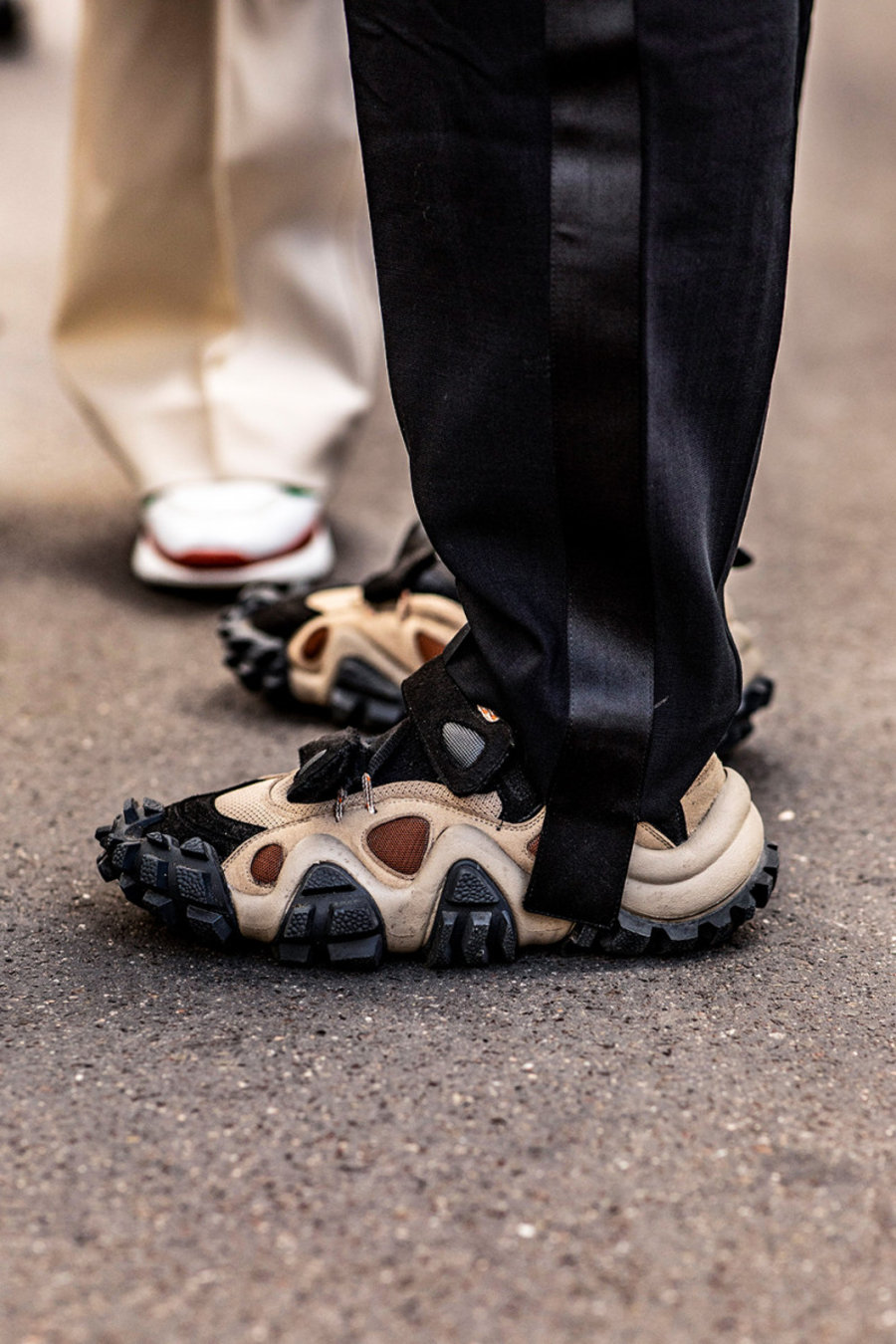 巴黎时装周作为时尚界的盛会,每次都会吸引全世界无数时尚先锋参与其中,除了时髦的服饰搭配之外,他们脚上的球鞋也成为一大风景线,有好多平日难得一见的奇特鞋款,不仅品牌丰富,外观更是千姿百态。 在这些鞋款中,复古风格的老爹鞋依旧占据主流,接下里让我们跟随 highsnobiety 的镜头来看一看,这些时尚达人们都穿了哪些鞋,你能认出几双呢? Pic via:highsnobiety / asia typek