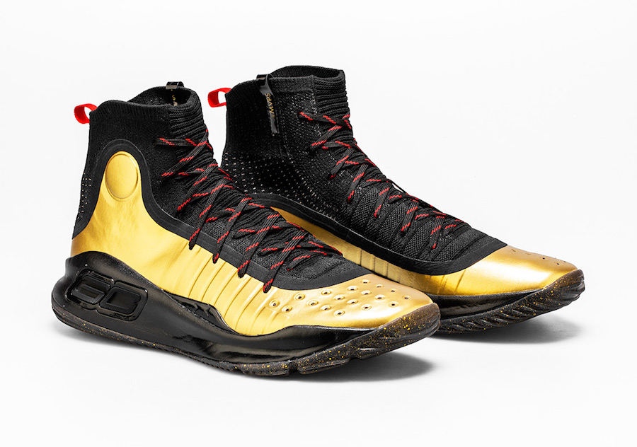 系列中包含 Curry 1 和 Curry 4 两双鞋,以库里获得的总冠军与 MVP 为主题,都使用黑金配色为主调,细节中加入红色点缀。