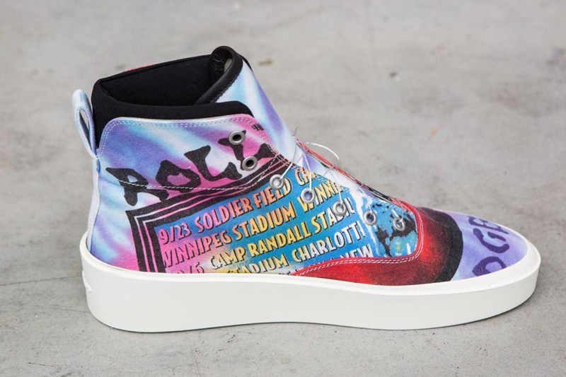 全新鞋款采用比篮球鞋更加修长简约的高帮设计,而特别之处则是鞋面材质是取自 80 和 90 年代的复古印花 T 恤,所以每双鞋款的图案和细节均是独一无二,并且由意大利手工制作而成,想必定价定价不菲,入手有一定难度。