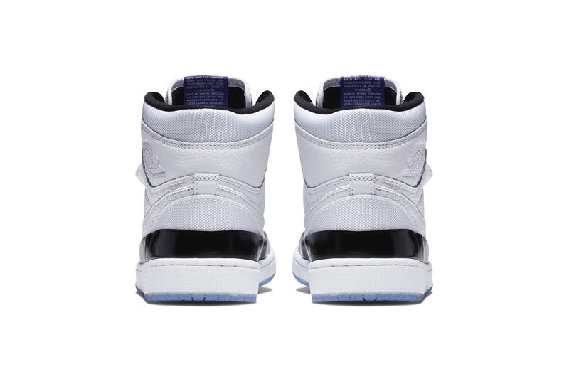 细节方面,鞋舌处的蓝色 Nike 标签,搭配中底上部的漆皮包围与水晶外底,完美呈现 Air Jordan 11 “Concord” 既视感。