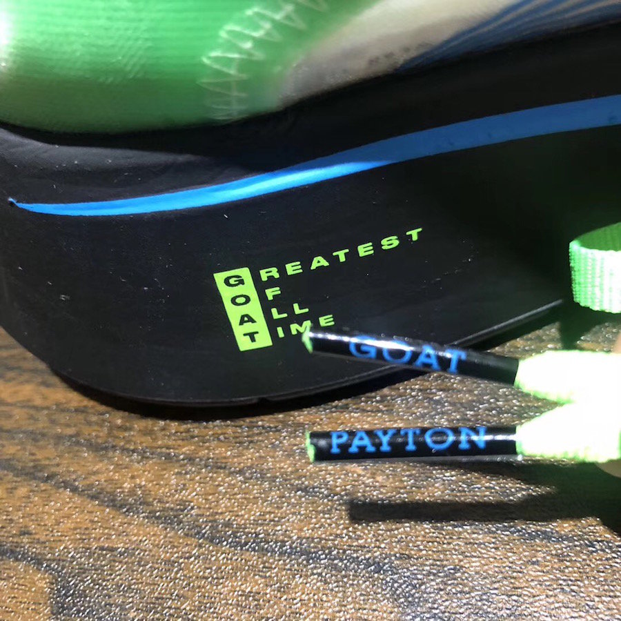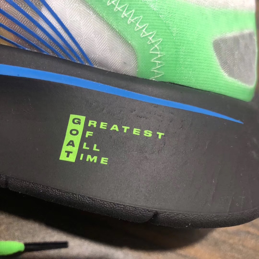 慈善配色一向都拥有超多的趣味细节,黑色的中底上有绿色的折线点缀,后跟处分别有 “1977” 和 “2016” 数字点缀,同时还有 “Greatest Of All Time (GOAT)” 字样点缀。