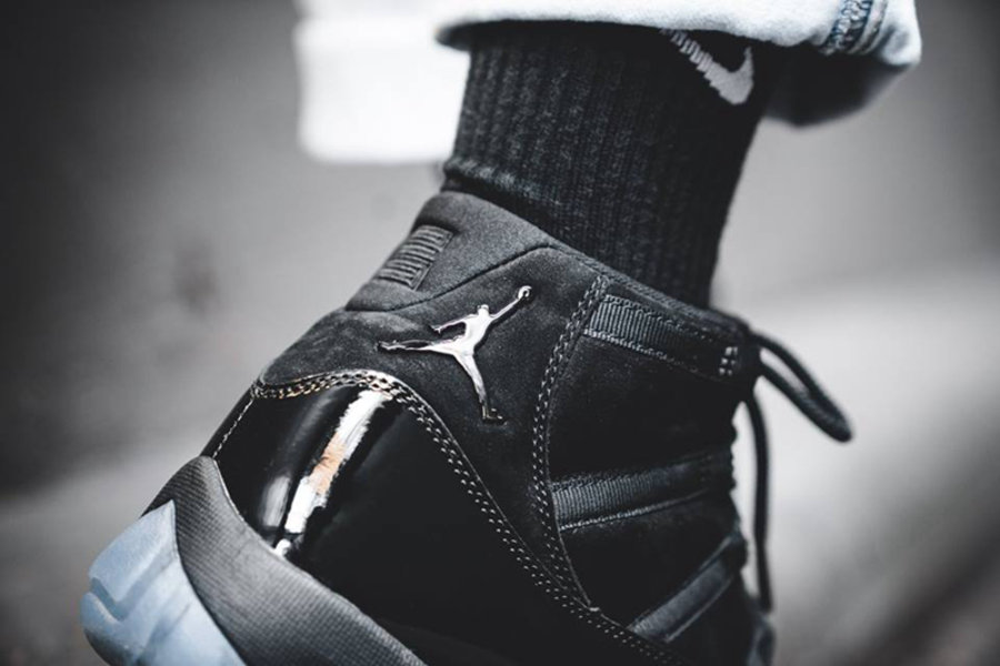 今年 AJ11 一反常态地推出了多款高帮配色。年中就有一款纯黑 Air Jordan 11 早早登场。