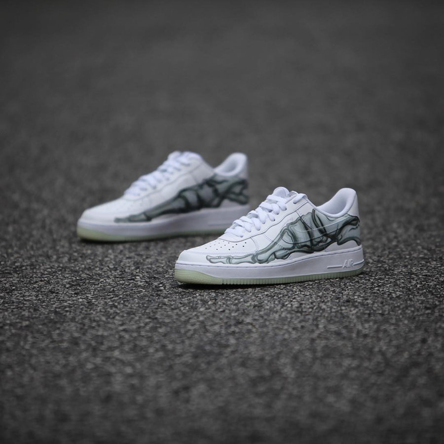 专为万圣节打造的这款 Air Force 1 鞋面带有脚部的骨骼图案,看起来就像被透视了一般。同时作为骷髅元素的表现,与万圣节的恐怖氛围相符。