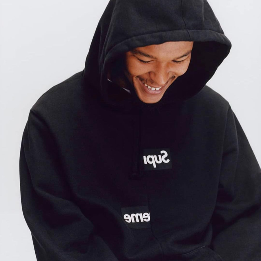 2018 秋冬 Supreme 最受潮人瞩目的一款单品莫属与 CDG 联名的错位 Box Logo 卫衣。
