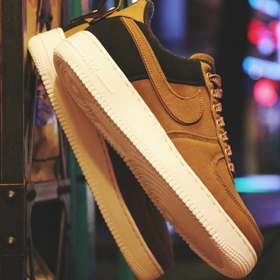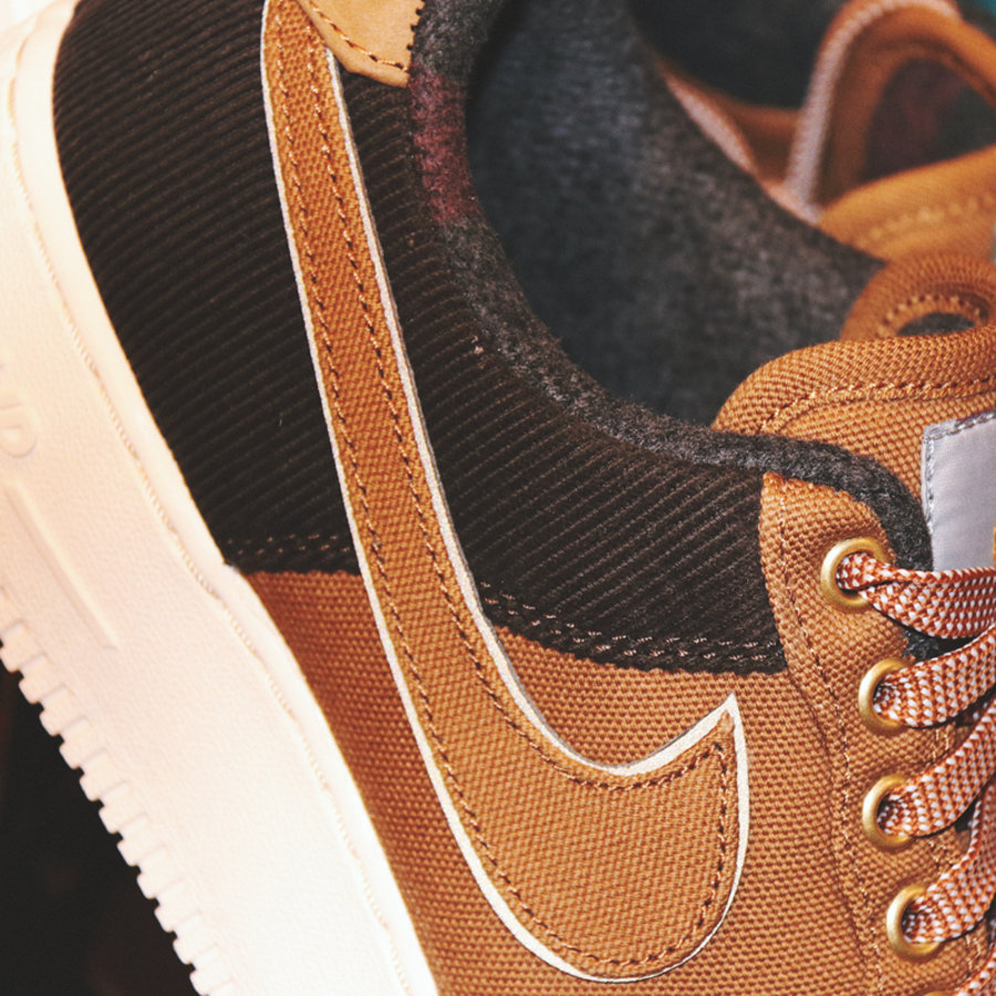 即将发售的 Carhartt x Air Force 1 依旧带有浓重的工装风格,使用今年流行的灯芯绒,质感过人。黑棕的配色适合秋冬穿着还极其百搭,你心动了吗?
