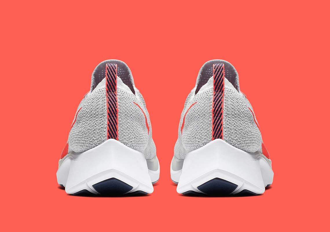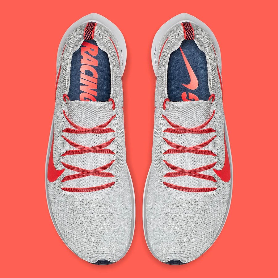 全新的 Nike Zoom Fly 整体鞋身造型更接近于顶级规格的 Zoom Vaporfly 4%,采用全编织中帮鞋领呈现,重量更轻,包裹也更加紧致舒适,选用 React 泡棉替代此前的 Lunarlon 材料,脚感更富有弹性,同时耐久度也大幅延长。