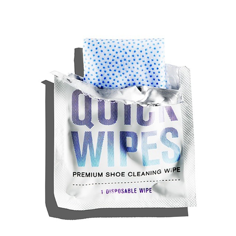 湿巾采用双层织物材质,一面较光滑适合细腻柔软的部分,另外一面有凸起的圆点对顽固脏污去除效果更好。擦拭时候不易破损,且不像普通湿巾一样爱掉毛粘在皮革上。但注意不要用在翻毛皮或牛巴革材质球鞋。