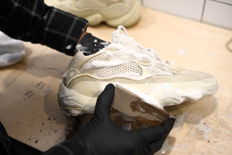 顺带一提,毛类材质球鞋基本是不能沾水清洁的!平日穿着应以防护为主,出席火锅、大排档、酒局、蹦迪什么的就放过它们吧!如果真碰到严重污渍,例如油渍血渍等,小编强烈建议送到专业清洗的地方处理!