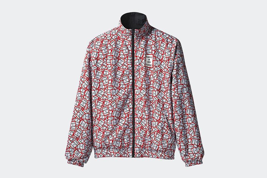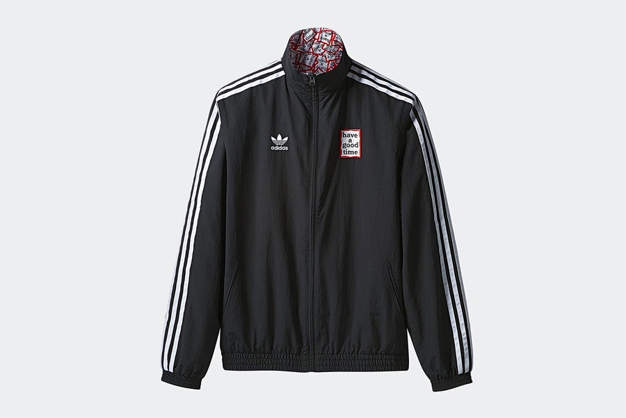 Have a Good Time 最具辨识度的 LOGO 元素自然是不会缺席,不仅有同 adidas Originals 三叶草标志的对称呈现,还有一个版本是 “全屏” 模式!眼花缭乱的 Have a Good Time Logo 遍布,视觉冲击力绝对是街头第一!