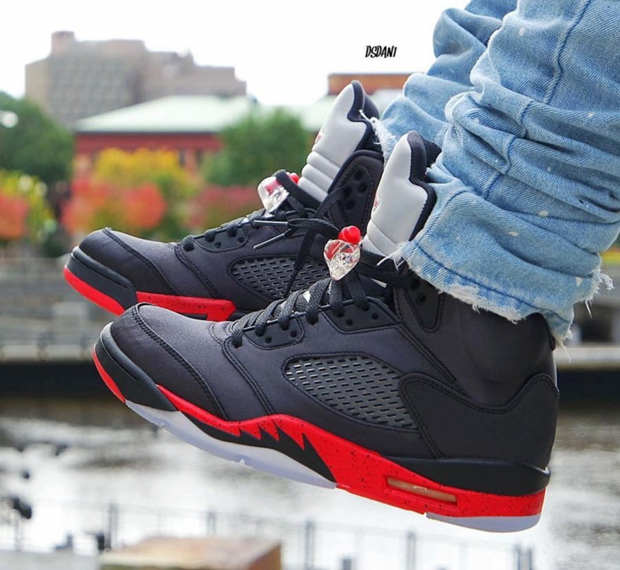 今年的 Air Jordan 1 丝绸扣碎凭借经典的配色和奢华优雅的质感俘获无数玩家的心。借此契机,Air Jordan 5 也即将推出一款丝绸黑红配色。经典的配色方案加上黑色绸缎鞋面,带来前所未有的细腻质感,同时更加柔软的材质能够杜绝大家担心的硌脚问题。