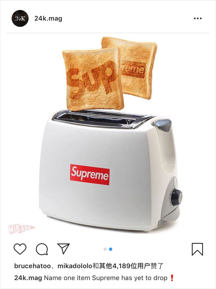 Supreme 的配件单品向来是玩家们的重点系列,近日网路上就曝光出一组 Supreme 的烤面包机。