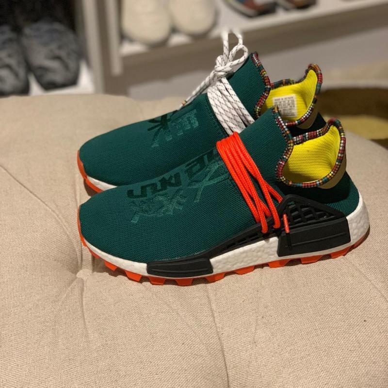 由 Instagram 球鞋摄影师 @yankeekicks 率先晒出这双全新配色,从实物图中不难看出,这双 Hu NMD 采用了深绿色鞋身,搭配黄色的内衬,彰显复古气质。