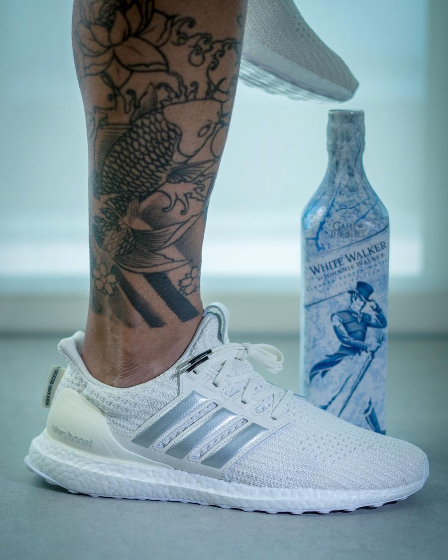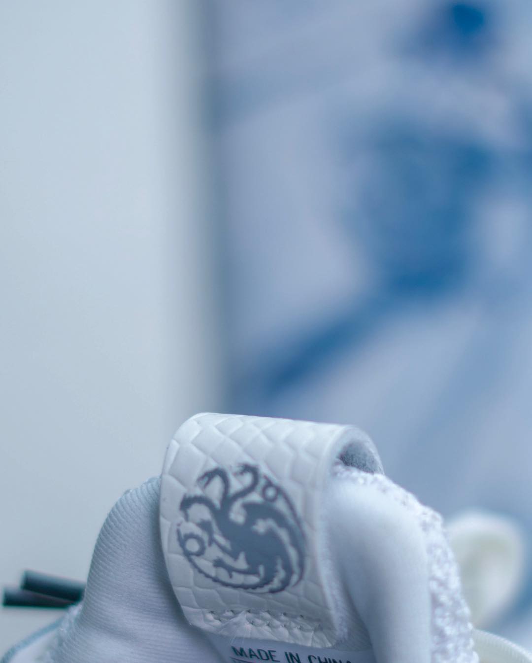 围绕坦格利安家族的箴言 “Fire and Blood”(血火同源) 主题展开设计,这双 UltraBoost 采用简约的设计风格,Primeknit 鞋身、支架、磨砂后跟和 Boost 中底均以白色装扮。