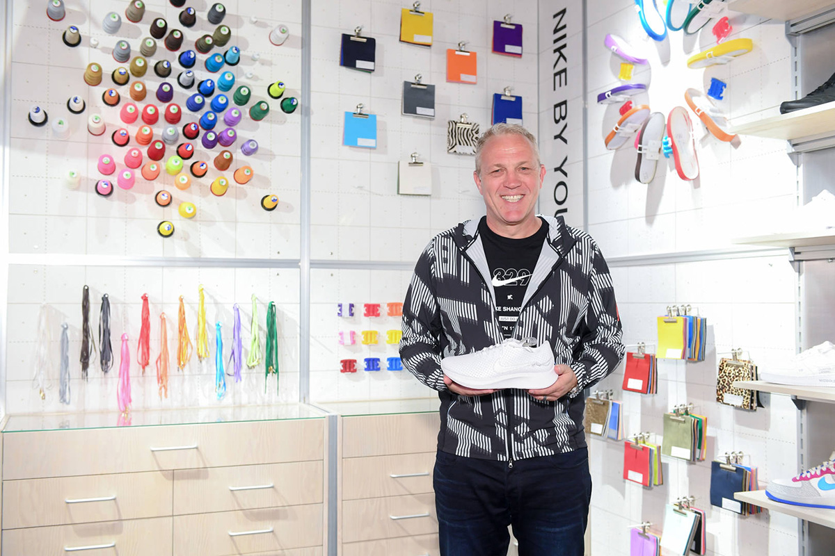 除了欣赏最新款的高性能运动鞋、最热门的潮流尖货,了解耐克产品的设计故事,在耐克上海 001 三层,张铭恩还通过 Nike By You 的会员服务体验了一把定制球鞋创作过程。通过喷绘、浸染、装饰等工艺打造一款独一无二的专属球鞋。“亲手为球鞋设计色彩的过程,就像是为球鞋赋予生命,这样的感觉真的是太棒了。”