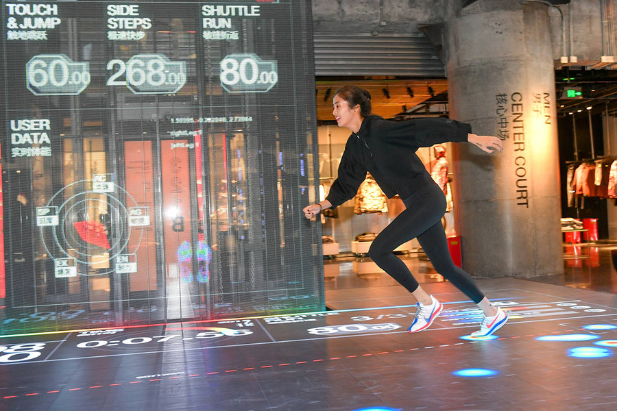 中国女足国家队守门员赵丽娜首次来到耐克上海 001,就被贯穿四层的“核心中场”震撼到了,随即就踏上数字屏幕,完成触地跳跃、极速快步、敏捷折返三项挑战。赵丽娜说:“高强度的专业训练是她的日常,而LED屏幕上的数字就好像足球比赛中的技术统计,在体育运动中,数字总能激励运动员们更进一步,努力超越昨天的自己。”