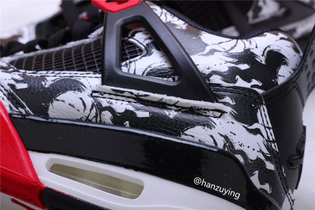 整双鞋最大的设计亮点在于鞋面上加入大面积的黑白涂鸦,与 Tattoo 纹身主题相呼应,水墨画风格的涂鸦中隐约能看到篮球图案,不知道大家看了之后评价如何?