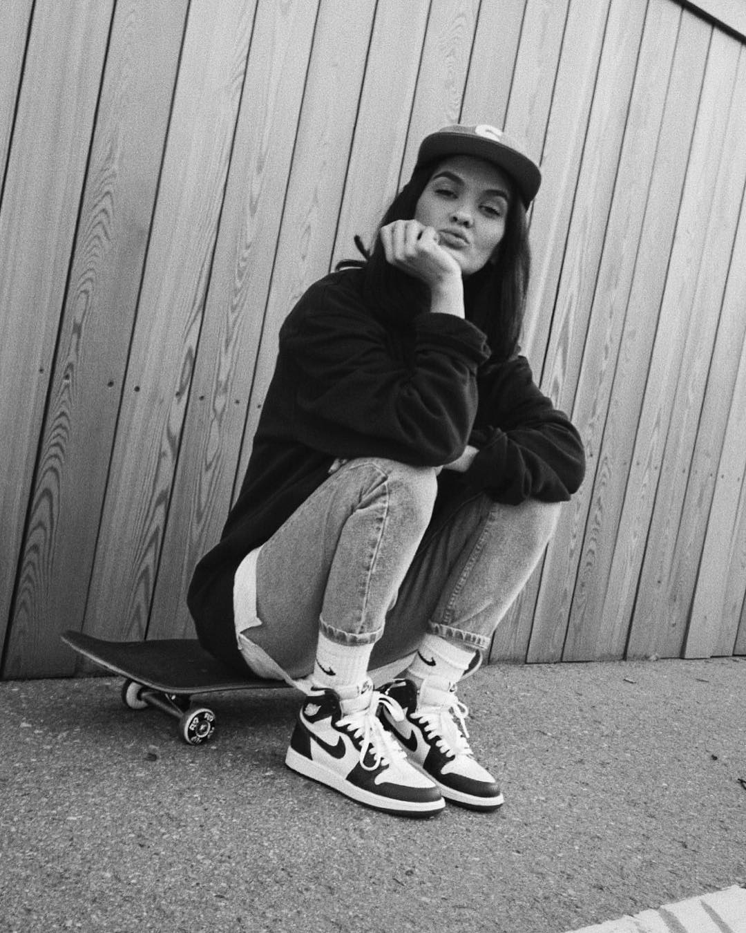 在她穿过的球鞋中,Air Jordan 1 的出镜率占了 90 %,是一位不折不扣的 Air Jordan 1 死忠粉。