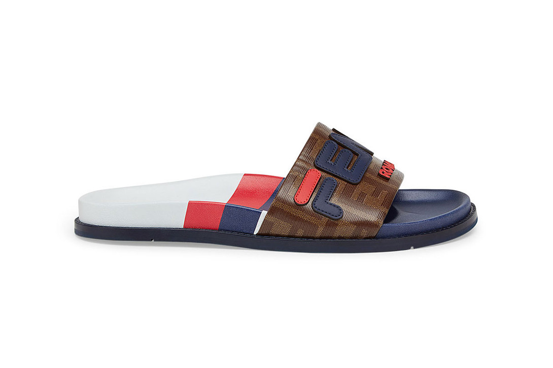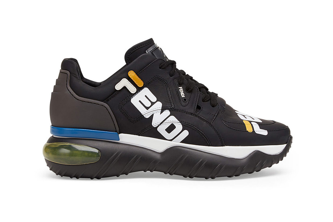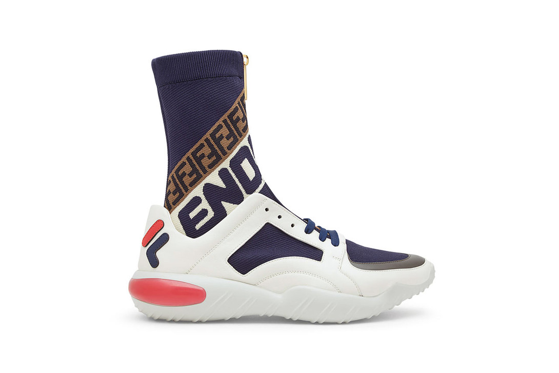 此次 FENDI x FILA 2018FW 运动系列在米兰时装周上首次亮相,其中的联名鞋款细节颇多,配色上也使用了 FILA 标志性的蓝、白和红色,并将 Logo 满印鞋身,满满的复古风。