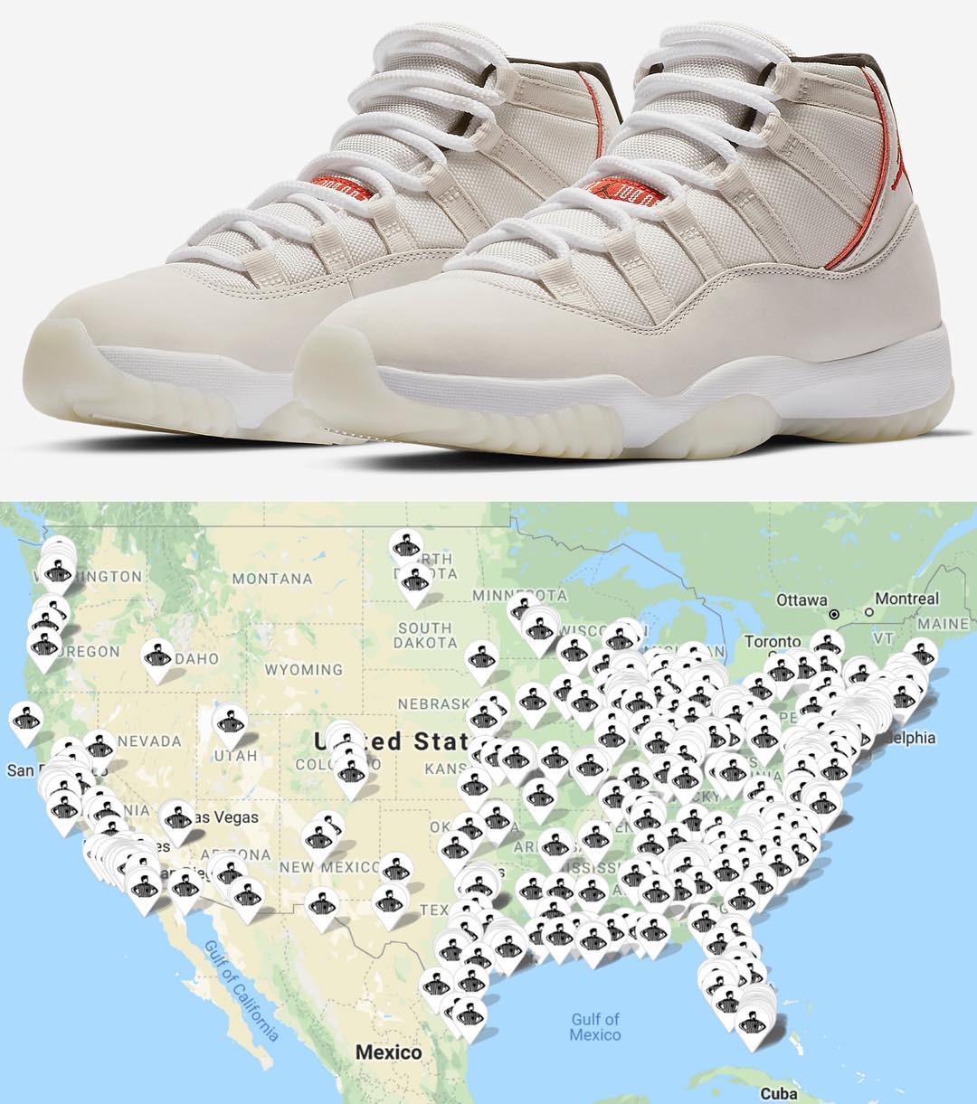 今日海外著名球鞋连锁店铺 Foot Locker 释出美国本土发售店铺地图,可看出发售店铺数量并不少,但鉴于 Air Jordan 11 在玩家心目中的特殊地位,每次都供不应求,恐怕还是具有一定的入手难度!目前国内淘宝男款预售价约在 ¥1900 RMB 上下,女码预售价则在 ¥1300 RMB 左右,均高于原价不少。
