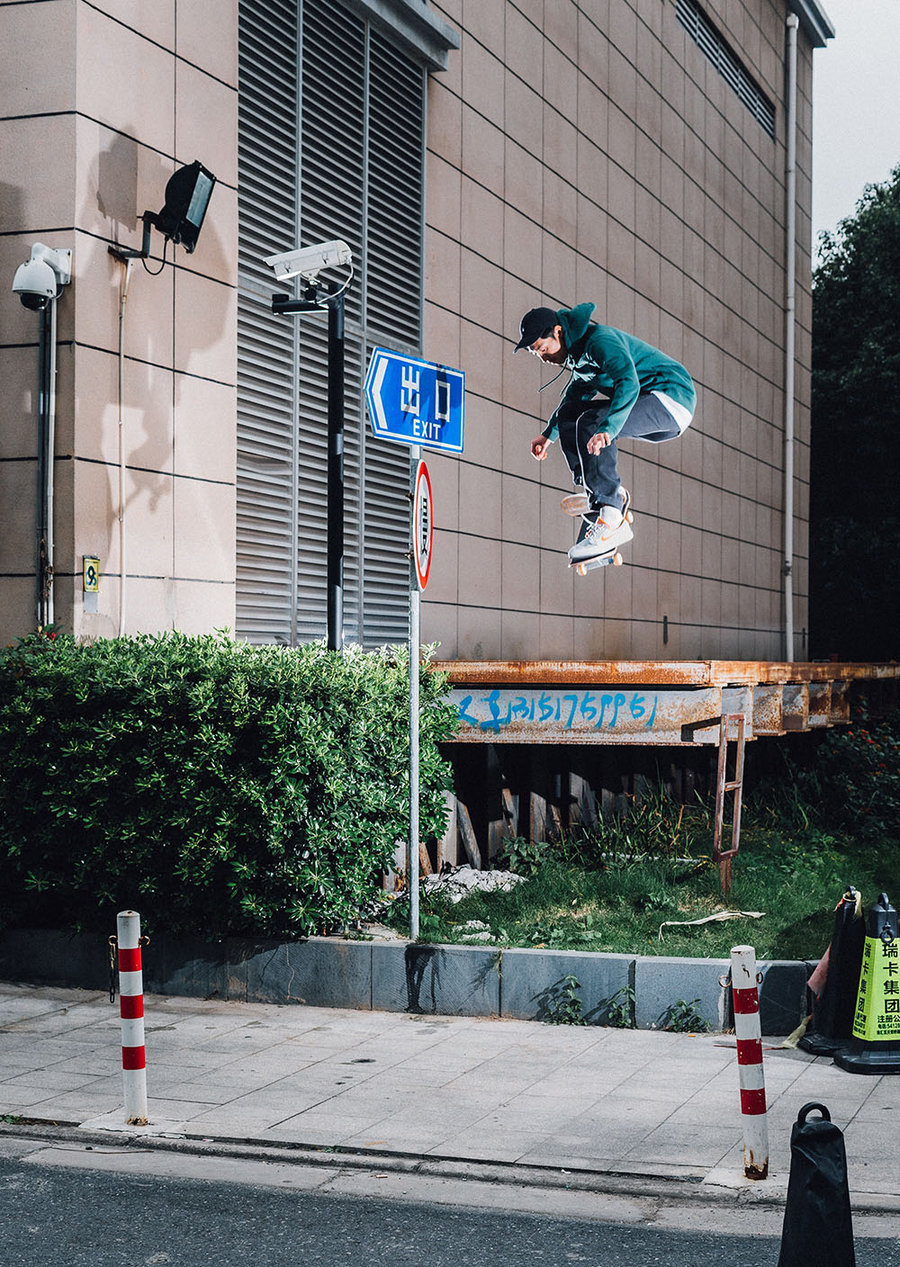 设计将 FLY 经营理念和标志性元素融入其中,表达对于滑板运动、文化和滑板鞋的热爱之情。鞋垫上的 “Wake Up Go Skate” 字样来自 FLY 店中的同名主题咖啡杯,鞋身以白色优质皮革代表白色的咖啡杯,而鞋舌的透明材质则像是咖啡杯的杯盖设计。