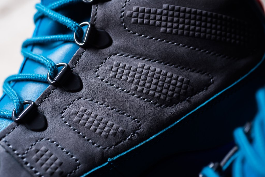 鞋款 Air Jordan 9 的基础上增添户外细节设计,金属鞋带扣环、防水涂层鞋面、加厚内衬以及全天候锯齿大底,让它全副武装,不仅造型硬朗霸气,更能抵御恶劣天气。