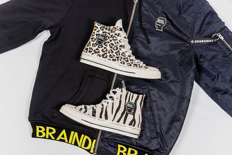 今日发售的 Brain Dead x Converse 联名系列绝对可说本周最让人眼前一亮的存在!将斑马纹、波点、迷彩、星条旗、豹纹等诸多元素,通过不对称的拼接首发集于一双 Chuck70s 之上,并在鞋帮处点缀 Brain Dead 标志性的头像 Logo。