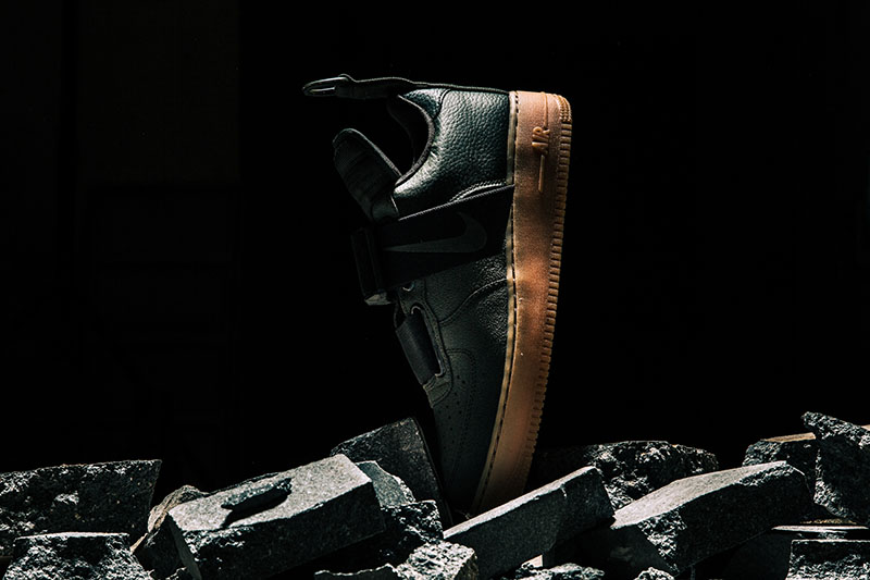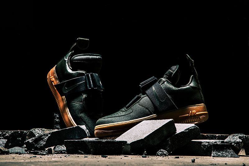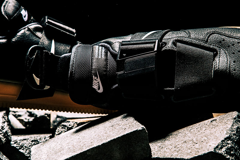 本次 Nike Air Force 1 Utility 鞋面采用弹性束带取代传统鞋带,并辅以前卫 Fidlock 磁性锁扣加持,在便于穿脱的同时,更为鞋款营造出不凡的视觉张力。