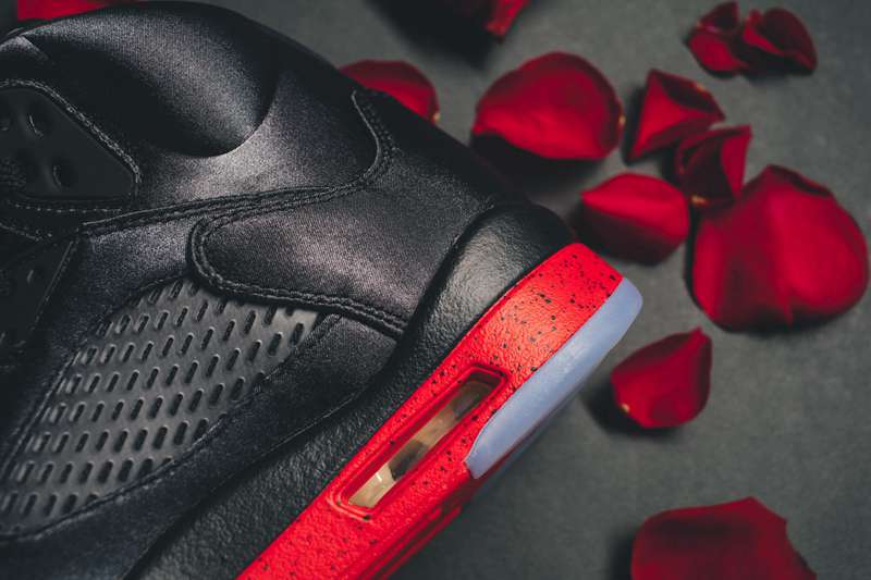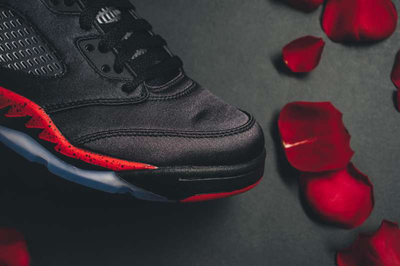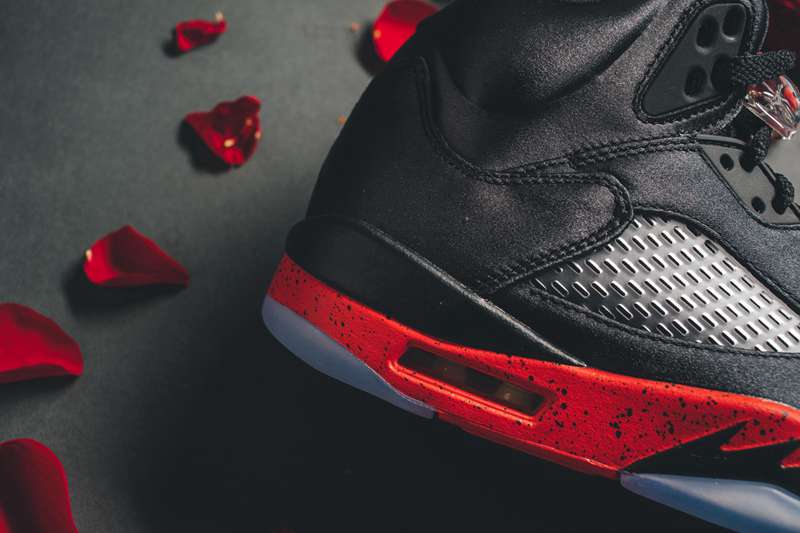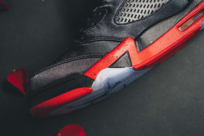 配色采用经典的黑红方案,不同于以往的皮革或麂皮材质,改用光滑的丝绸打造,中底采用红色泼墨营造细节,熟悉的银灰色 3M 反光鞋舌依旧抢眼,搭载冰蓝水晶外底,低调中透出奢华,极具高贵气质!