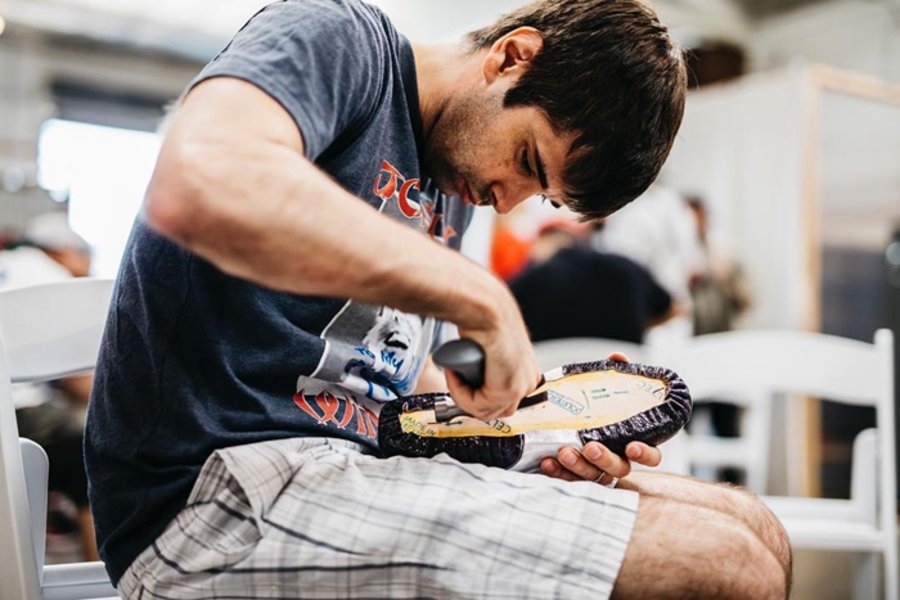 而他还不定期举办以鞋型为主题的定制辅导课程 Shoe Surgeon Shoe School,报名价格同样不菲,基本在 $4000 美元左右。这笔费用可以让报名学员在 The Shoe Surgeon 的指导下,通过所提供的特殊物料及一套专属球鞋定制工具,自主设计、亲手改造一双奢华的专属定制球鞋!