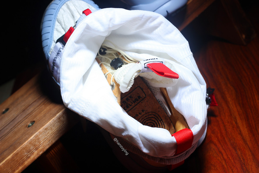 在设计上 Tom Sachs 给所有人带来意外,从外形上看起来像是一双户外滑雪鞋,其实拥有双层鞋面设计,内层为传统的网布和皮革打造,外层为防水尼龙布材质,保暖性看起来非常不错,两层鞋面均为拉动抽绳即可收紧,使穿脱方便快捷。