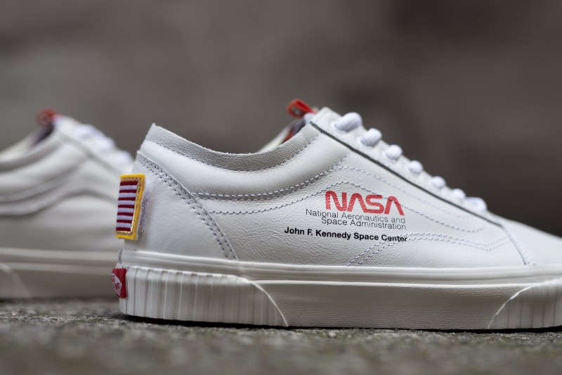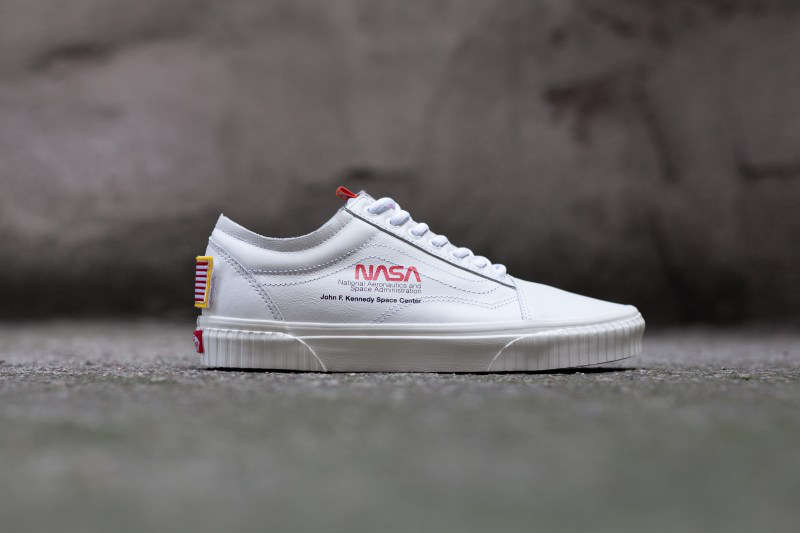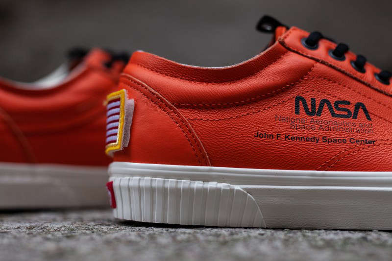联名版本 Old Skool 则推出白、橙两款配色,鞋身同样采用优质皮革打造,并在鞋身处点缀上 “NASA” 与 “John F. Kennedy Space Center” 字样,彰显联名身份,以及后跟处星条旗魔术贴徽章点缀。