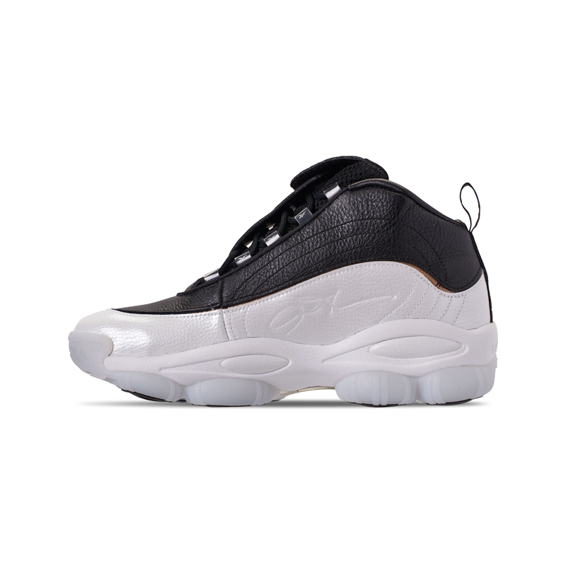 后跟织带带有锐步经典 Logo 串标,符合当下流行趋势。醒目的黑白配色鲜明亮眼又极具年代感。
