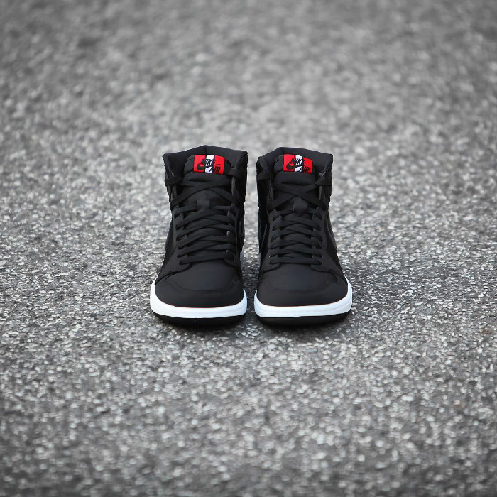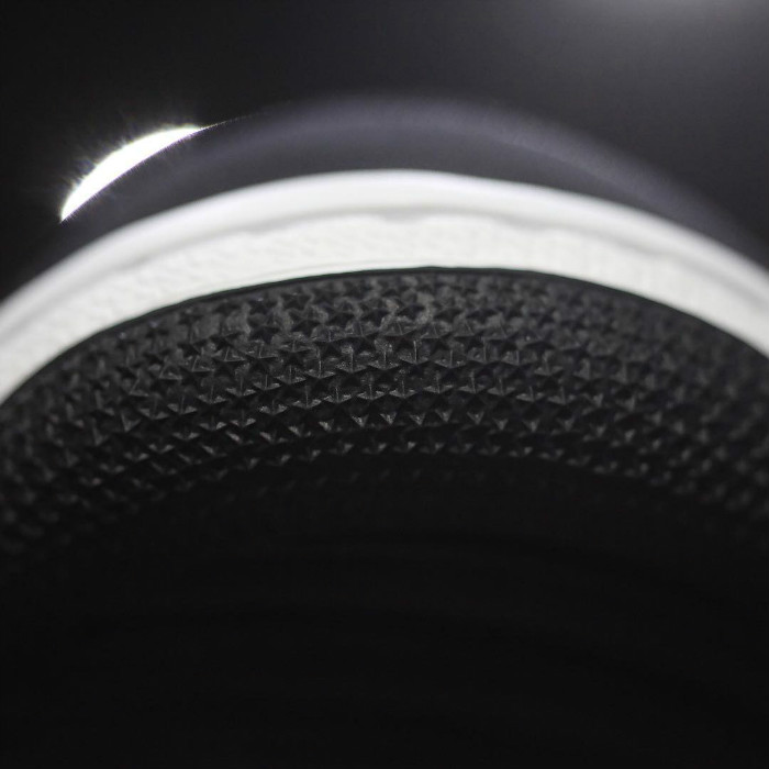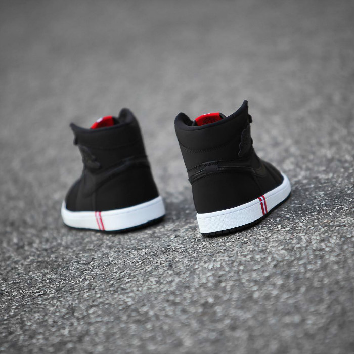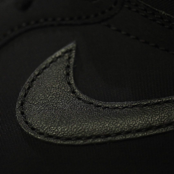 鞋身运用在足球领域常用的氯丁橡胶打造,AJ1 上标志性的飞翼 Logo 与 Nike Swoosh 采用细腻皮革呈现。