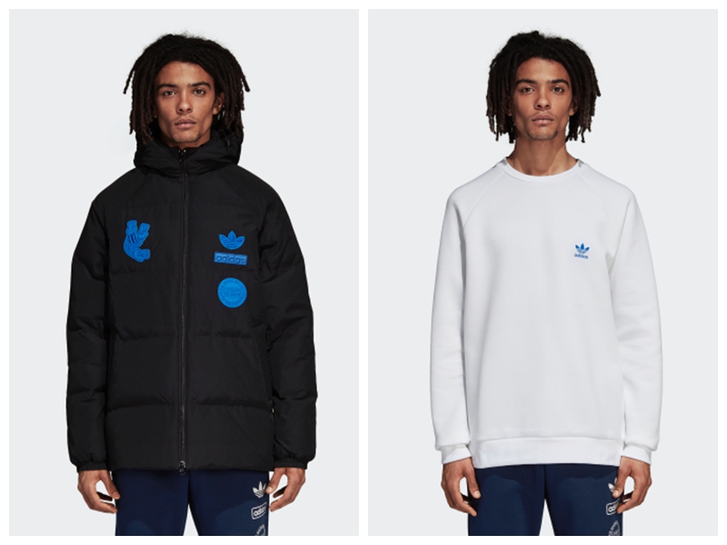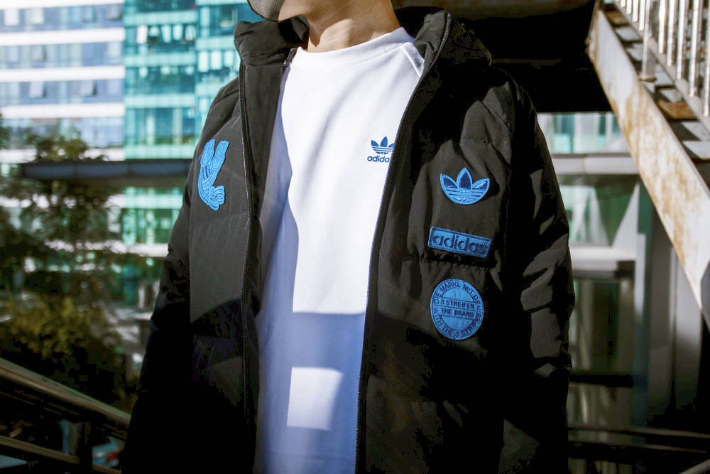 纯黑色装扮的羽绒服,搭配颇具复古气质的宝蓝色徽章点缀。展现 adidas Originals 一贯的玩味脑洞设计。