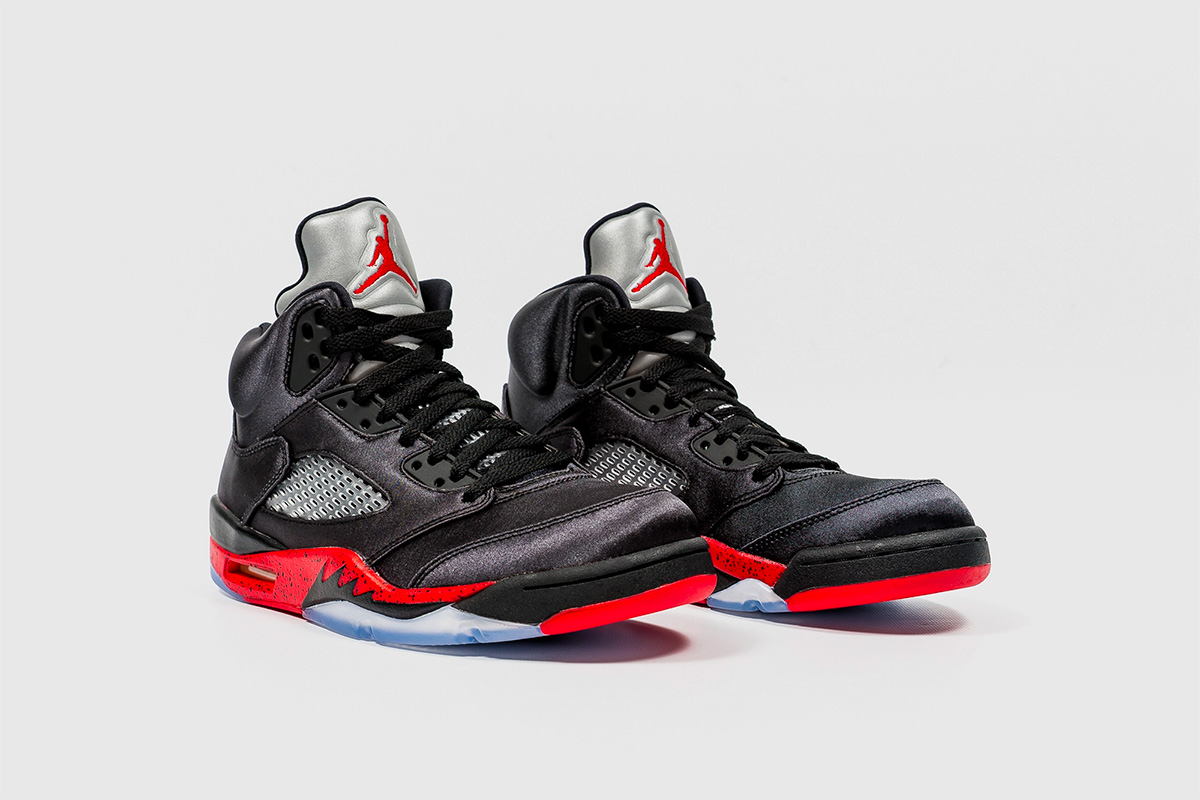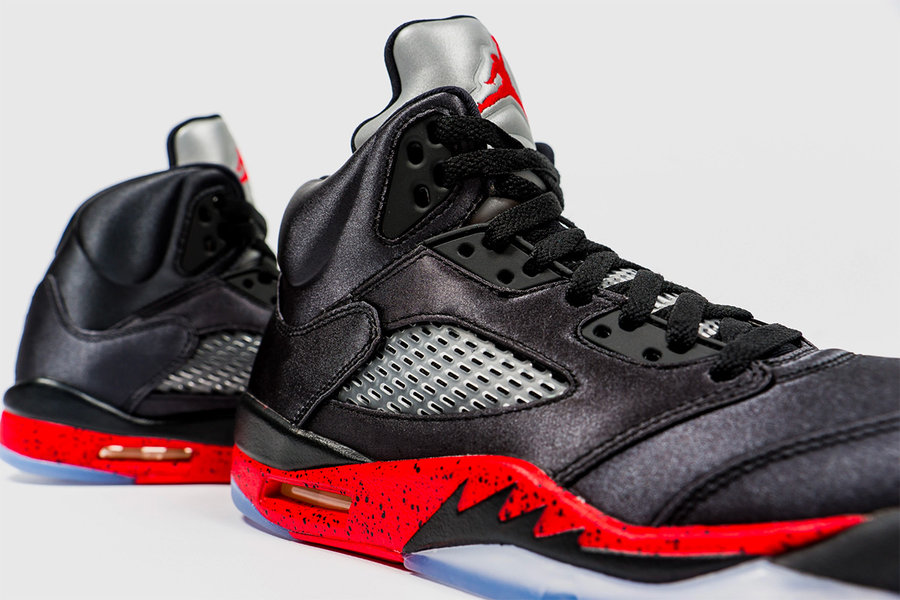 Bred 黑红装扮再现,此番再度呈现于 Air Jordan 5 经典鞋型,但采用了丝绸面料,独特的光泽质感让人难忘! 这款 Air Jordan 5 “Satin Bred” 将于 11 月 3 日在北美地区发售,发售价 $190 美元。 中国地区暂时还没有发售的消息,目前的市场预售价格在 ¥1400 上下。 熟悉又沉稳百搭的黑红装扮,3M 反光大鞋舌自然不会缺席,随着光线强弱和观看角度的变化,丰富的光泽效果也绝对独特。 货号:136027-006