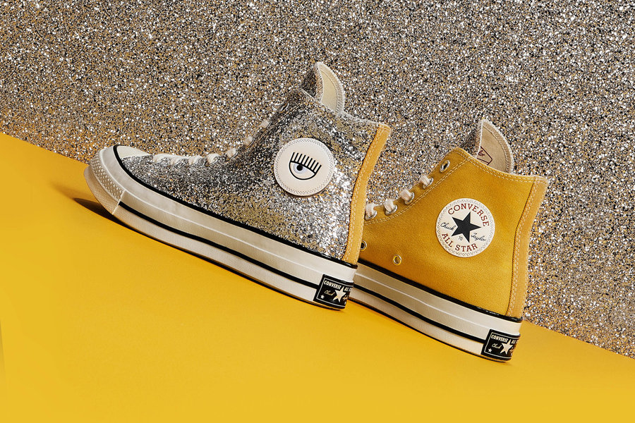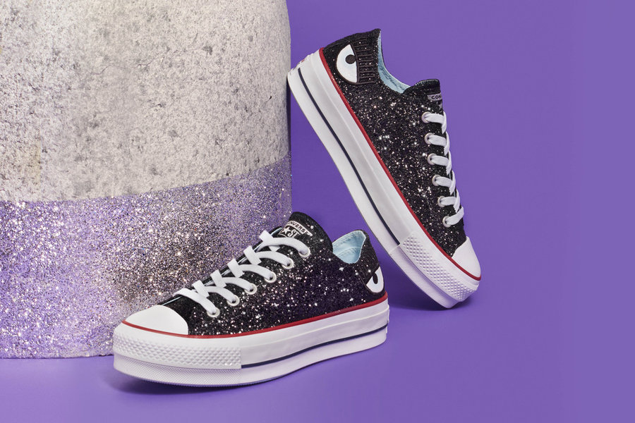 All Star 鞋身则布满亮片,每双鞋均点缀 Chiara Ferragni 火遍全球的 “大眼睛”。Chuck 70 点缀的眼睛徽章更是可替换的魔术贴设计。