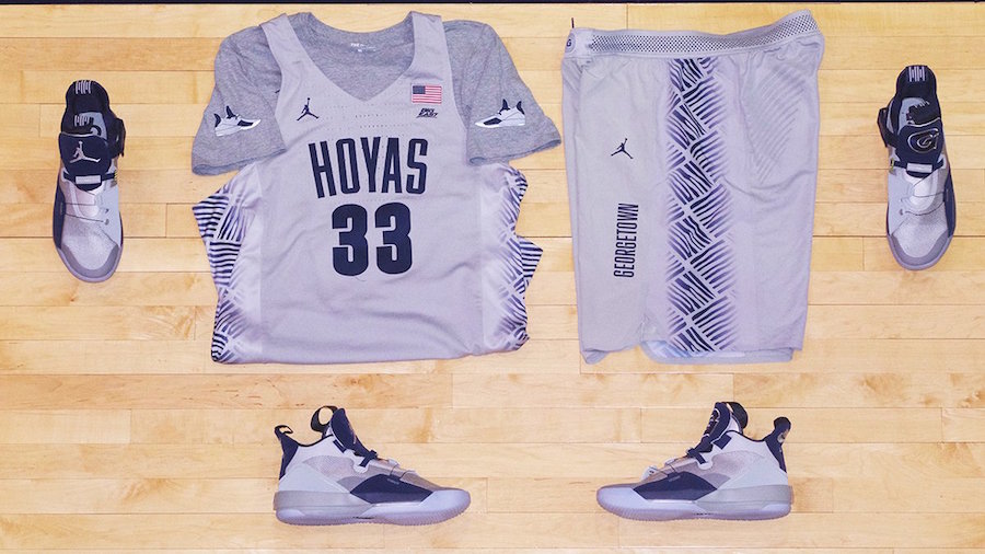 NCAA 大学专属配色一直是玩家们最眼馋的怨念物,近日乔治城大学又得到了全新装备,包括两款 Air Jordan 33 PE 还有专属 AJ33 主题 T 恤。