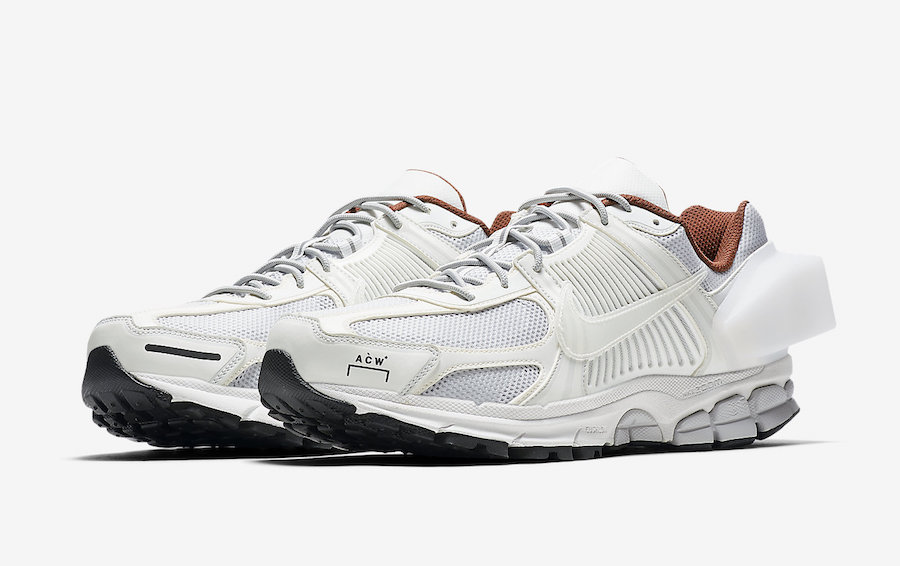 全新联名跑鞋以 Nike 在 2010 年推出的 Nike Zoom Vomero+ 5 为蓝本打造。整体造型与原版颇为相似,但在鞋头添加标志性 ACW Logo,后跟处还大胆地加入方形模块设计,为鞋款增加强烈的科技感。