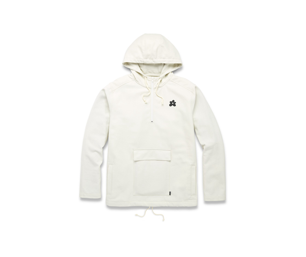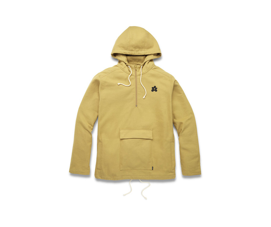 本季还有白色和卡其色两款连帽卫衣,也与鞋款风格类似,使用更粗纹理的布料打造,质感与众不同。半拉链设计和腹部的口袋极具辨识度,胸前和背后分别印有小花 Logo 和 GOLF le FLEUR * 反写字体,彰显联名身份。
